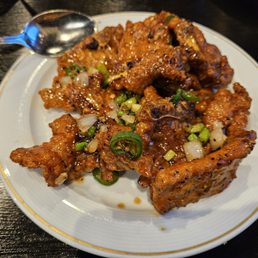 Our family celebrated a birthday tonight by ordering many family favorites : French style beef was very tender you could slice it with a fork. Typhoon style crispy battered shrimp is crunchy and topped with fried garlic pepper and black beans - this topping is delicious with leftover rice the next morning . Tried Taiwanese style noodles for the first time-thin yellow egg noodles sautéed with lot of vegetables and mushrooms in it , not the usual saucy type of noodles - will get this again. Hot and sour soup seems milder this time. Simply tossed with garlic, Taiwanese lettuce or yu choy is delicious. Chicken and salted fish fried rice was served with a load of chicken. Chong Qing fried chicken is chopped pieces, each one had a nice crunch and chili spice level was very pleasant. We got two smaller lobsters without noodles, which came with lots of chopped onions and peppers. Complementary hand wipes for afterwards. Fish fillet in chili oil also has some braised Napa cabbage slices for a little crunch since the fish is very tender. Very tasty food. Servers introduced each dish as It was brought out. Steamed rice and teas are not included anymore . A surcharge for parties of 6 or more is added. Very popular for family style meals - the three large round tables were always occupied as we had dinner. Handicap accessible toilets were clean. Spacious parking. They sell their own peanuts and frozen dumplings as well. Sue and the other workers here are very friendly, will explain the menu items and make recommendations to round off the entire meal.